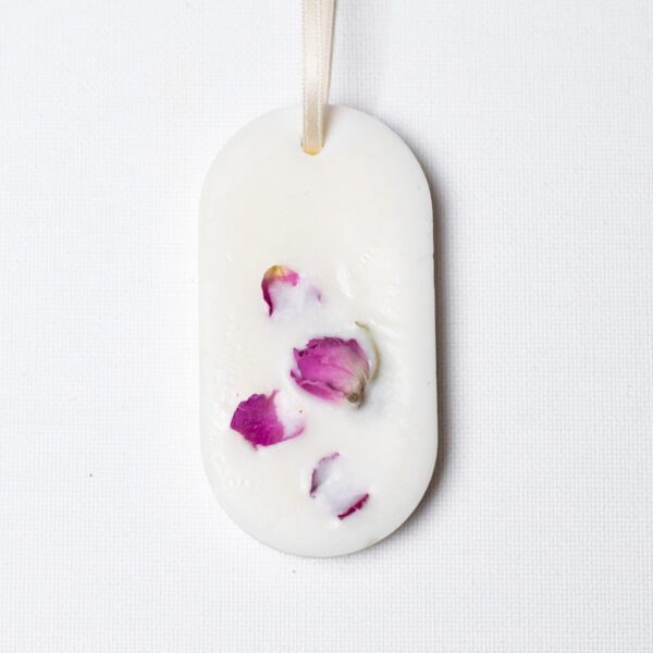Unsere handgegossenen Duftwachs-Sachets bestehen aus 100% rein-natürlichem Sojawachs und werden in liebevoller Handarbeit mit einer ausgewählten Duftkomposition aus 100% naturreiner ätherischer Öle angereichert und mit getrockneten Rosenblüten geschmückt – ein wahrer Hingucker.