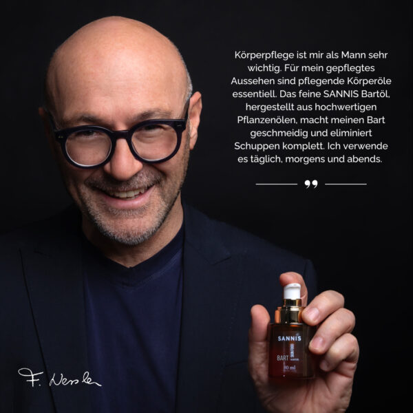 Naturinspiriertes Bartöl auf der Basis von SANNIS Bio-Leinöl und ausgewählten Pflanzenölen.
